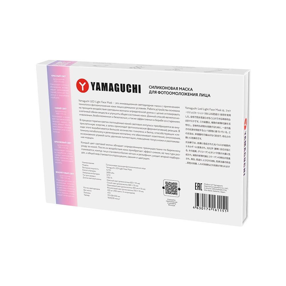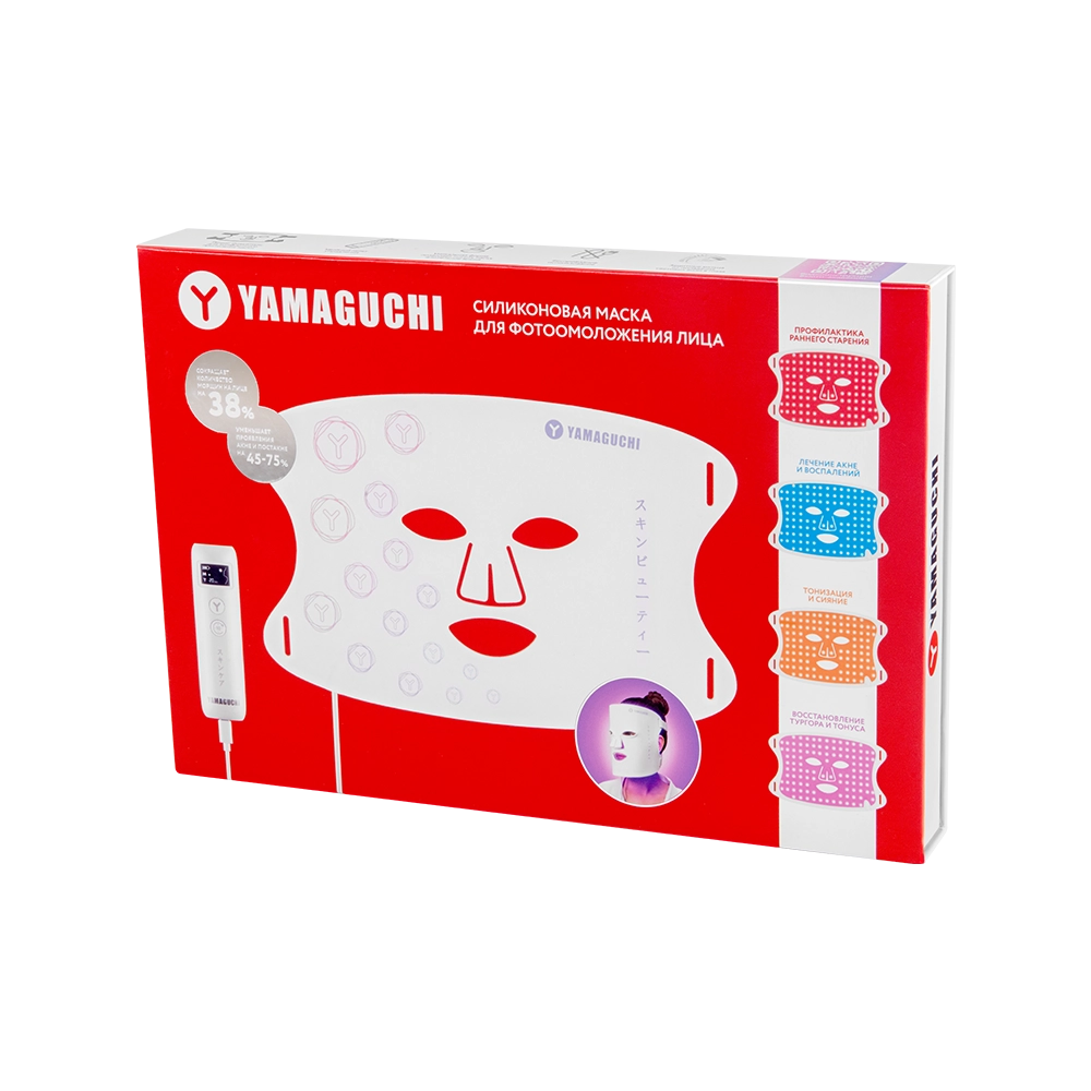 Инновационная беспроводная светодиодная силиконовая маска Yamaguchi LED Light Face Mask предназначена для комплексного ухода за кожей лица в домашних условиях.