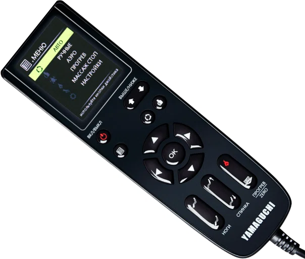 Управление креслом — максимально простое и интуитивно понятное, в том числе благодаря русифицированному пульту и меню управления. Выбрать нужный режим, управлять скоростью и интенсивностью массажа, музыкой и другими функциями — справиться с этим теперь можно за секунды.